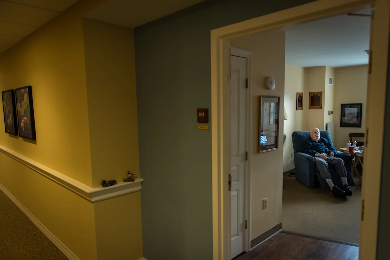 Glover at home in a nursing care facility in Yarmouth on Tuesday, October 25, 2016.